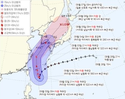 | 2022년 9월 6일 | 매우 강 | 45m/s | 420km | 서귀포 동쪽 |