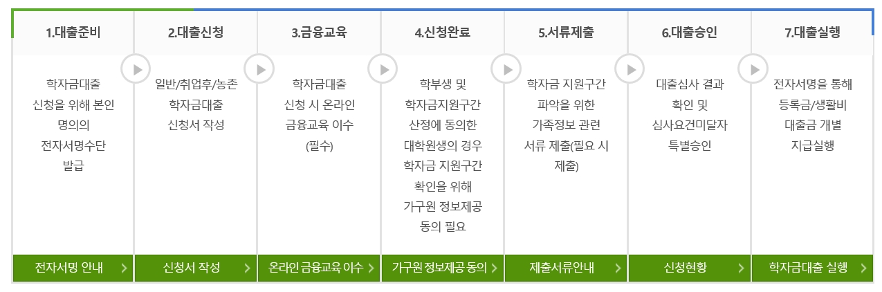- 학부생 및 대학원생(만 55세 이하)에게 학자금(등록금 및 생활비)을 대출해주고 대출기간 동안 원리금을 분할하여 상환하는 제도
